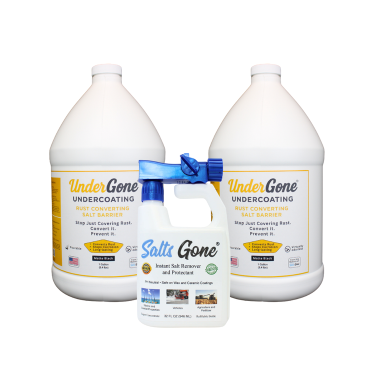 Achieve professional-grade corrosion prevention from start to finish with our premium combination of 2 Gallons of Under Gone™ Undercoating and the Salts Gone® Hose-End Sprayer. Thoughtfully paired to deliver both proper surface preparation and long-term protection, this kit represents the ultimate foundation for rust-free performance.