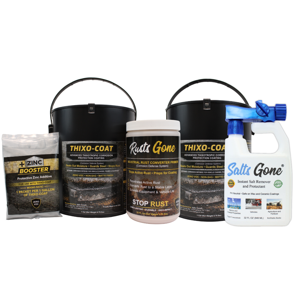 Combination Pack: 2 Gallons of Thixo-Coat, Zinc Booster, Rusts Gone, and Salts Gone® Hose End Sprayer