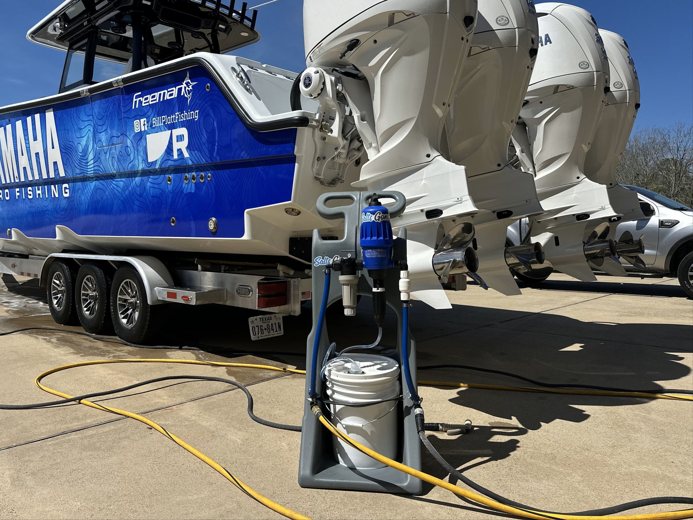 You already know that salt is corrosive to your boat, trailer, reels, etc. You also know it's unavoidable, and cleaning the boat is the worst part of the day!