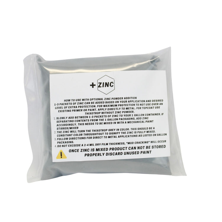 1. Add 1-3 packets of zinc to a gallon of Thixo-Trop, mixing until a consistent gray color is achieved.