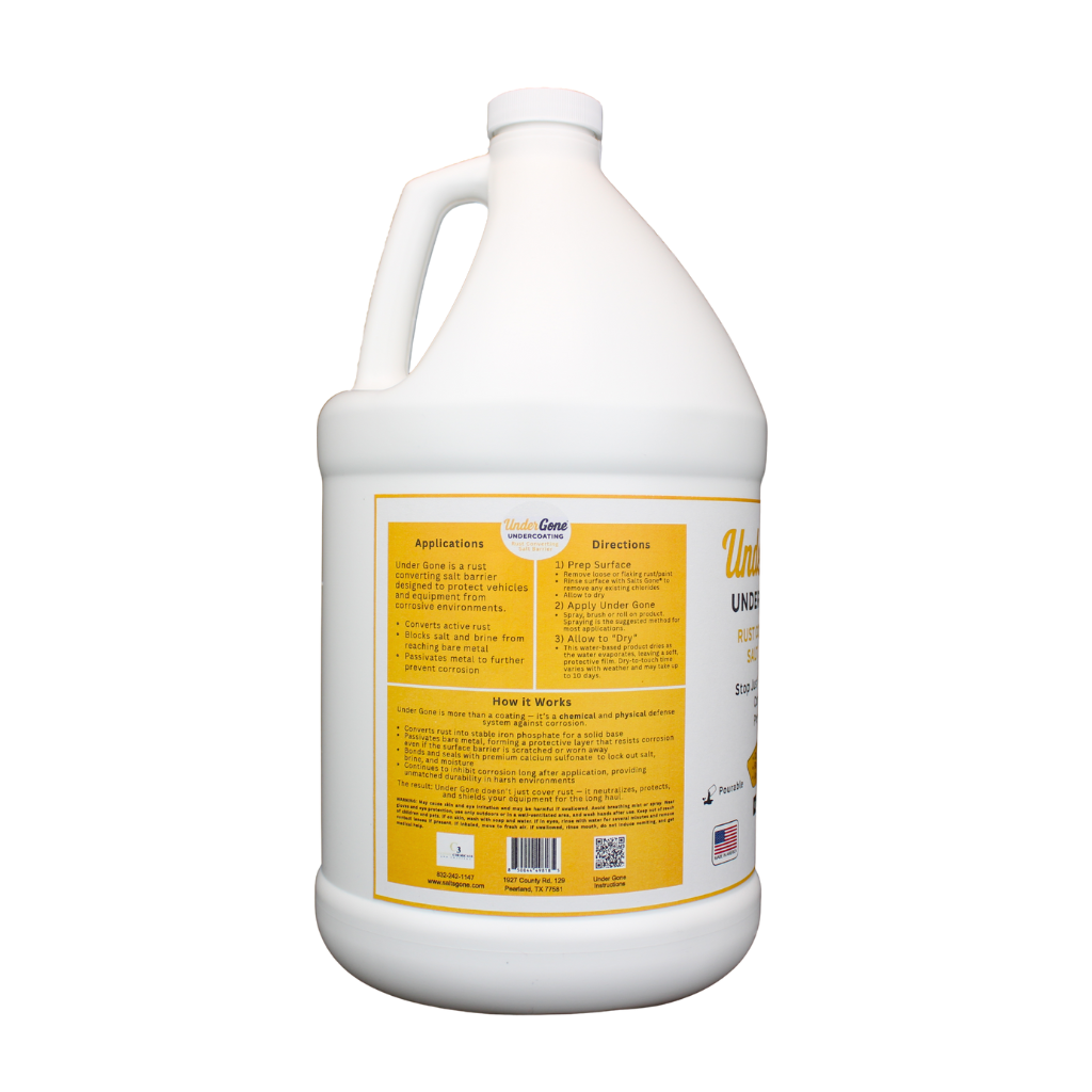 For decades, undercoating has been a line of defense against road salt, brine, moisture, and corrosion. But until now, most products have only covered up the problem. Introducing Under Gone™ – the most revolutionary advancement in vehicle undercoating since its invention. Designed by corrosion experts and proudly made in the USA, Under Gone™ doesn’t just shield your undercarriage—it chemically corrects existing rust and creates a long-lasting barrier against future damage.